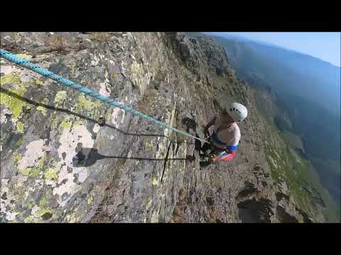 Rapelando y escalando la cara Este del Pico Ocejon, Sierra Norte de Guadalajara.